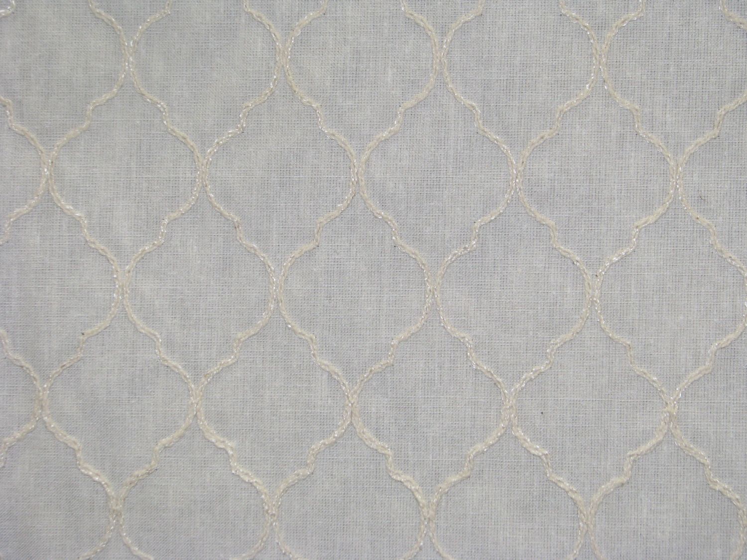 Coyne Bisque is am ogee pattern Embroidery light weight Fabric suitable for drapery and window treatment.