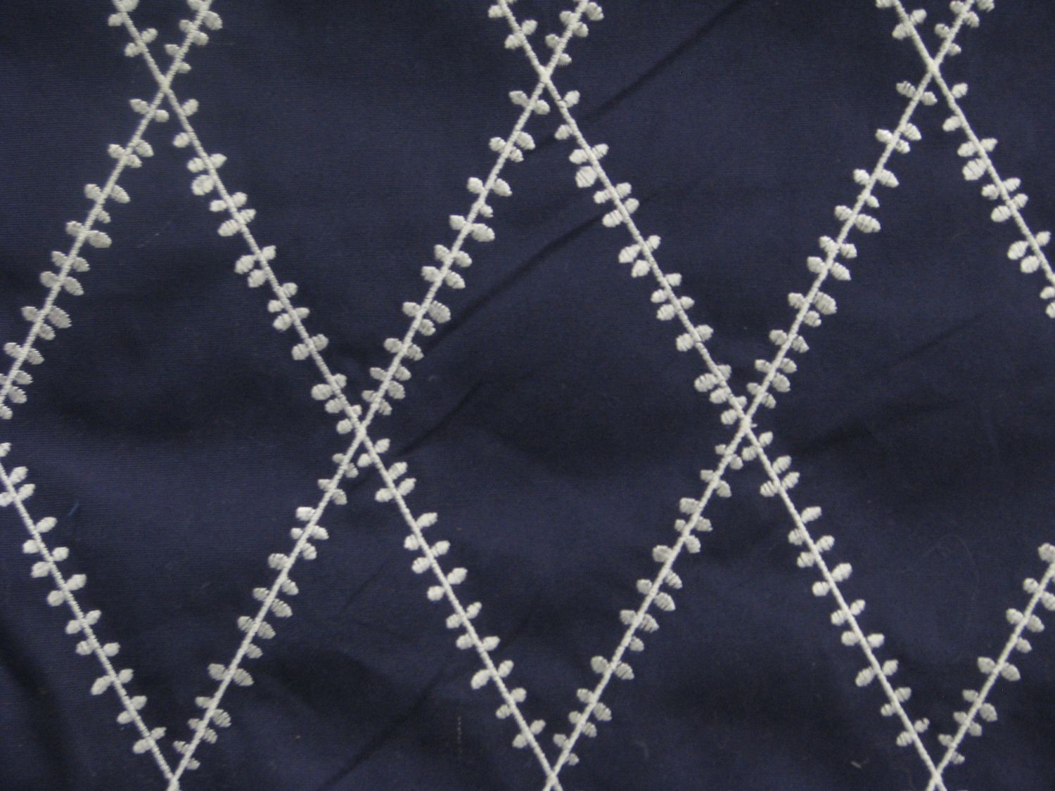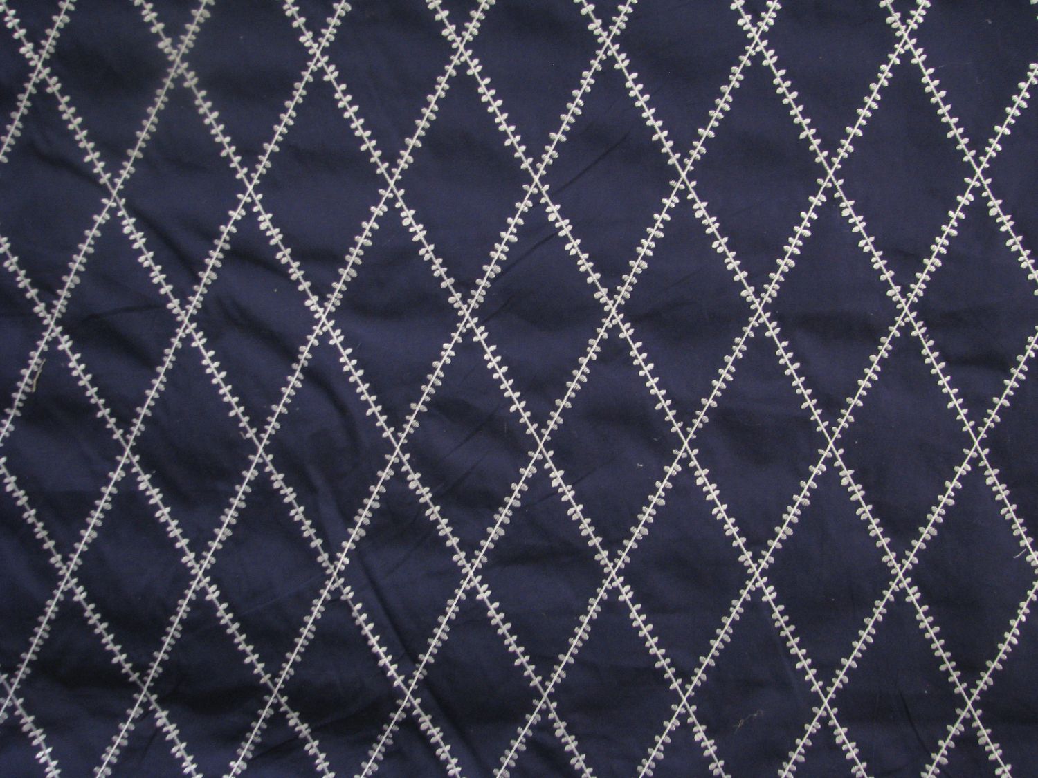 This Embroidery fabrics is based on 100% cotton navy fabrics, good for Bed spread . bed skirt and window treatment.