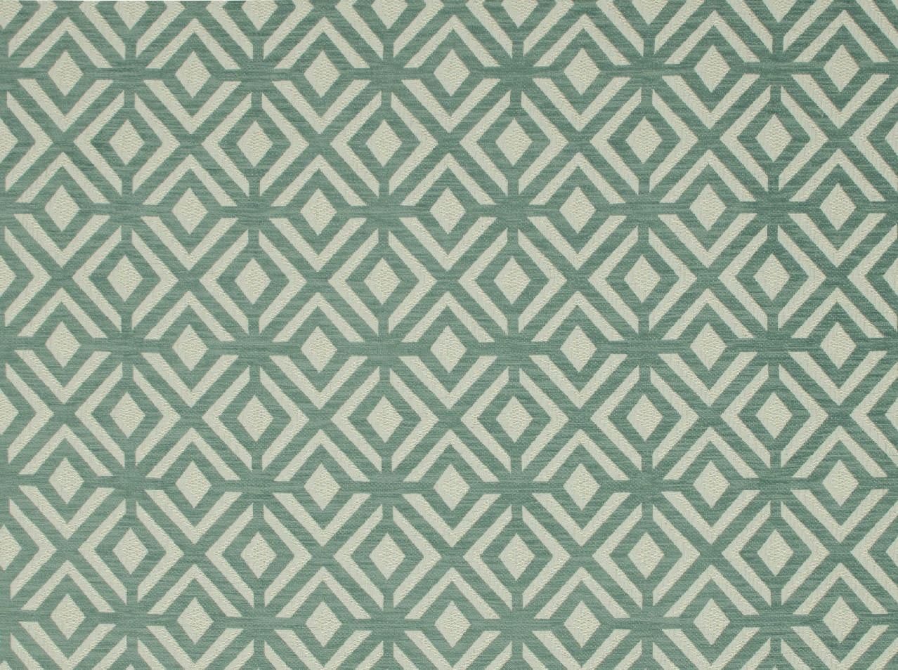 Make a statement with Mathis 592 Spa, a richly textured jacquard chenille in spa-green accented with elegant white diamond motifs.