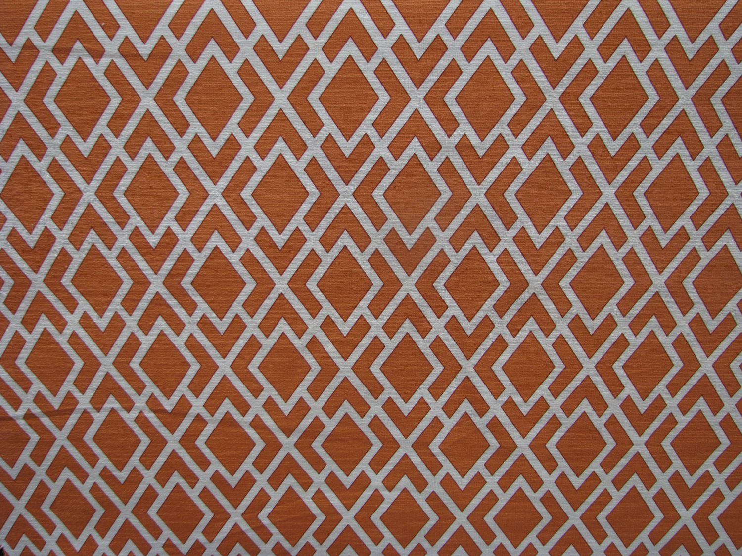 This 100% cotton fabric features a geometric print in a stunning orange hue.
